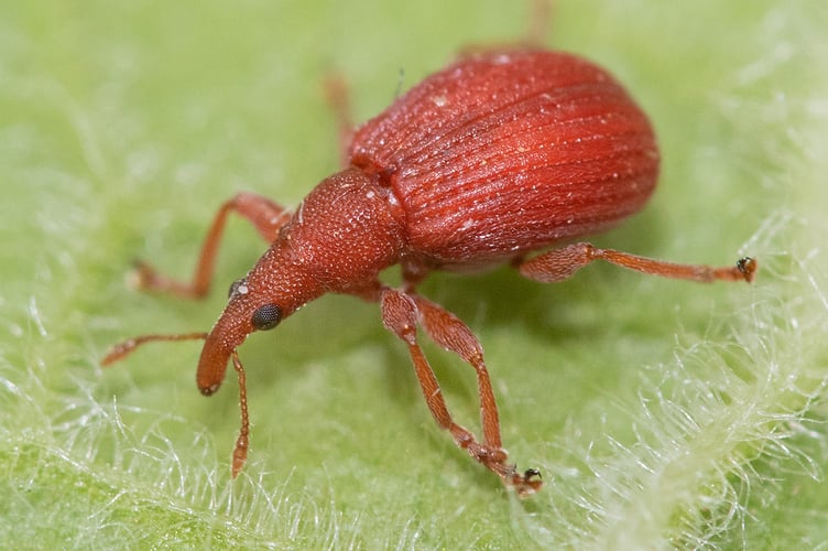 Weevils may initially look similar to other members of the general beetle family but have an elongated snout (called a rostrum) which gives them a rather comical appearance. Their antennae are situated towards the tip of this snout and can be elbowed which adds to their strange appearance.