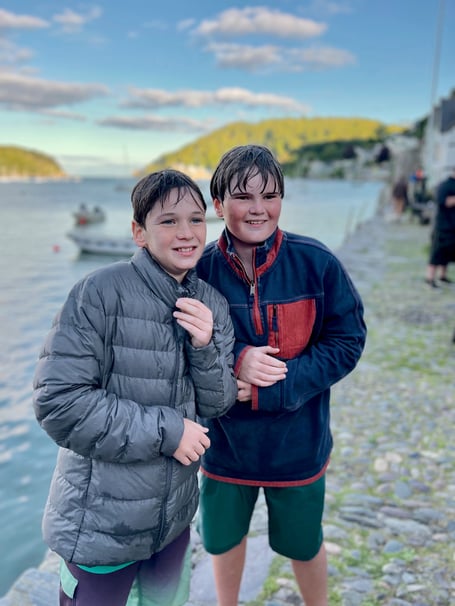 Mum Lucy takes up the story: “One evening we had intended to go crabbing at Bayards Cove but because the tide was coming in the water levels were too low, so the boys were collecting pebbles on the shoreline. “One of the locals / tourists bet the boys they wouldn’t get in the cold water….
