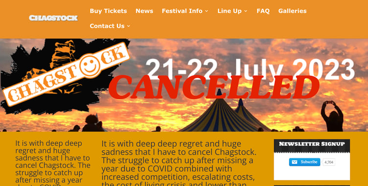 Festival organiser Simon Ford said: ‘It is with deep deep regret and huge sadness that I have to cancel Chagstock. The struggle to catch up after missing a year due to covid combined with increased competition, escalating costs, the cost of living crisis and lower than expected ticket sales, make it impossible to continue with the event.