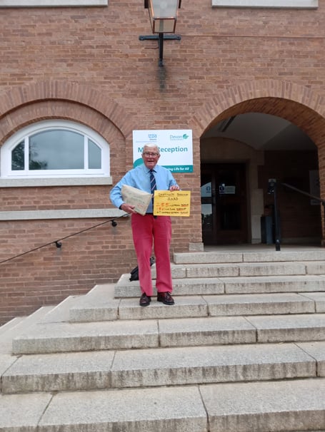Campaigner Teddy Cranmer hand delivered the letters to County Hall in Exeter – 255 last Friday and a further 75 this week – after distributing letters around the town for residents and businesses to fill in.