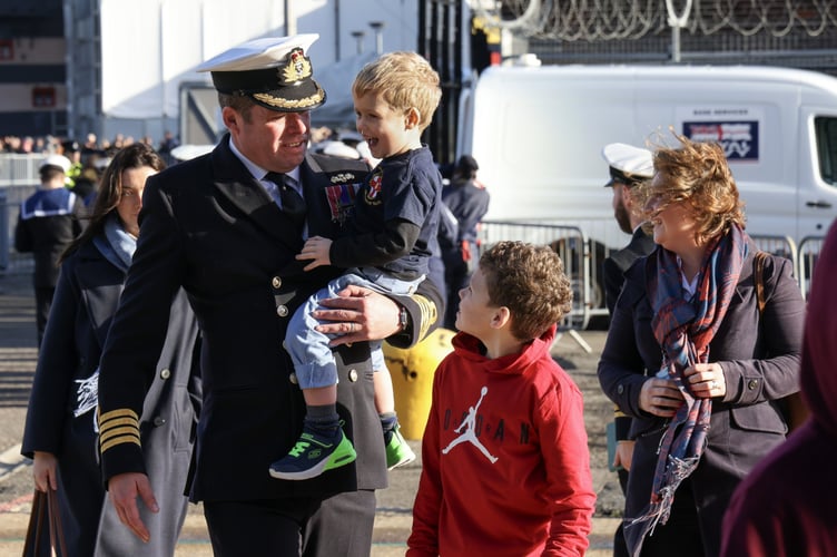 The aircraft carrier enjoyed the largest homecoming the Hampshire Naval Base has seen in several years as she completed a three-month deployment to the United States.