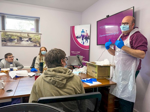 In house trainer Rob giving a demonstration on PPE