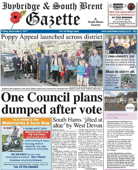 Also in this week we report on Modbury RBL’s Poppy Appeal and the work of Ivybridge and Modbury firefighters tackling a blaze in a slurry pit.