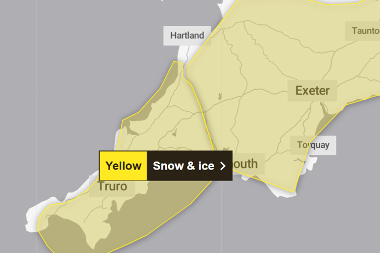 A yellow weather warning remains in place across most of Devon and Cornwall for snow and icy patches, with potential travel disruption expected to continue throughout the day (Thursday January 9).